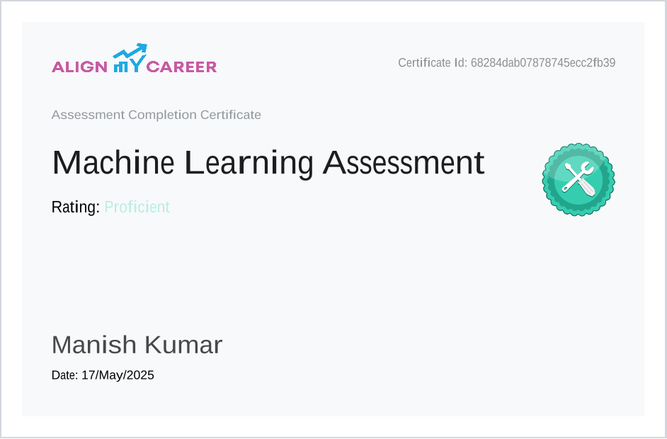 Assessment to evaluate machine learning skills, focusing on key concepts such as algorithms, model training, feature engineering, evaluation metrics, and practical applications.